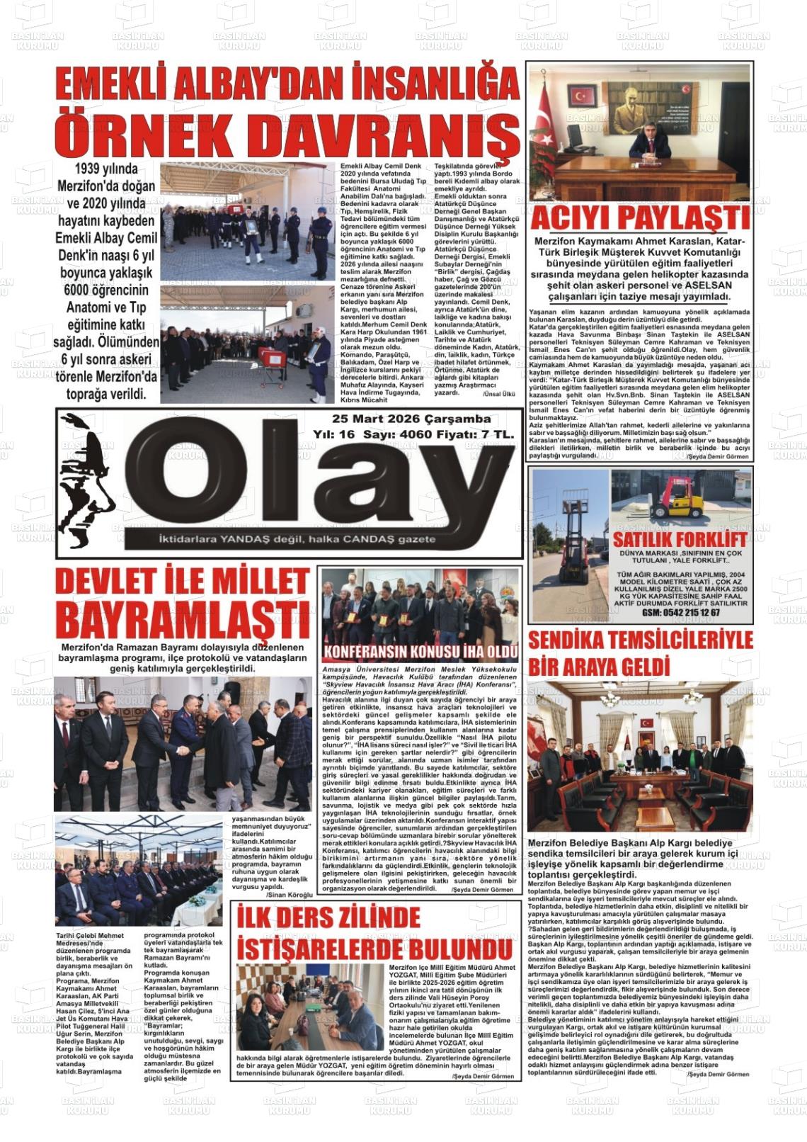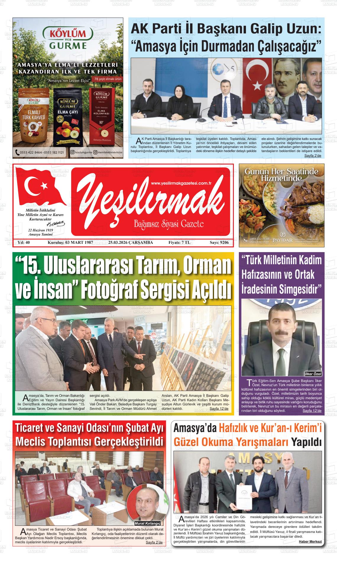 Amasya Yerel Gazeteleri 25 Mart 2026, Çarşamba Günü Manşeti