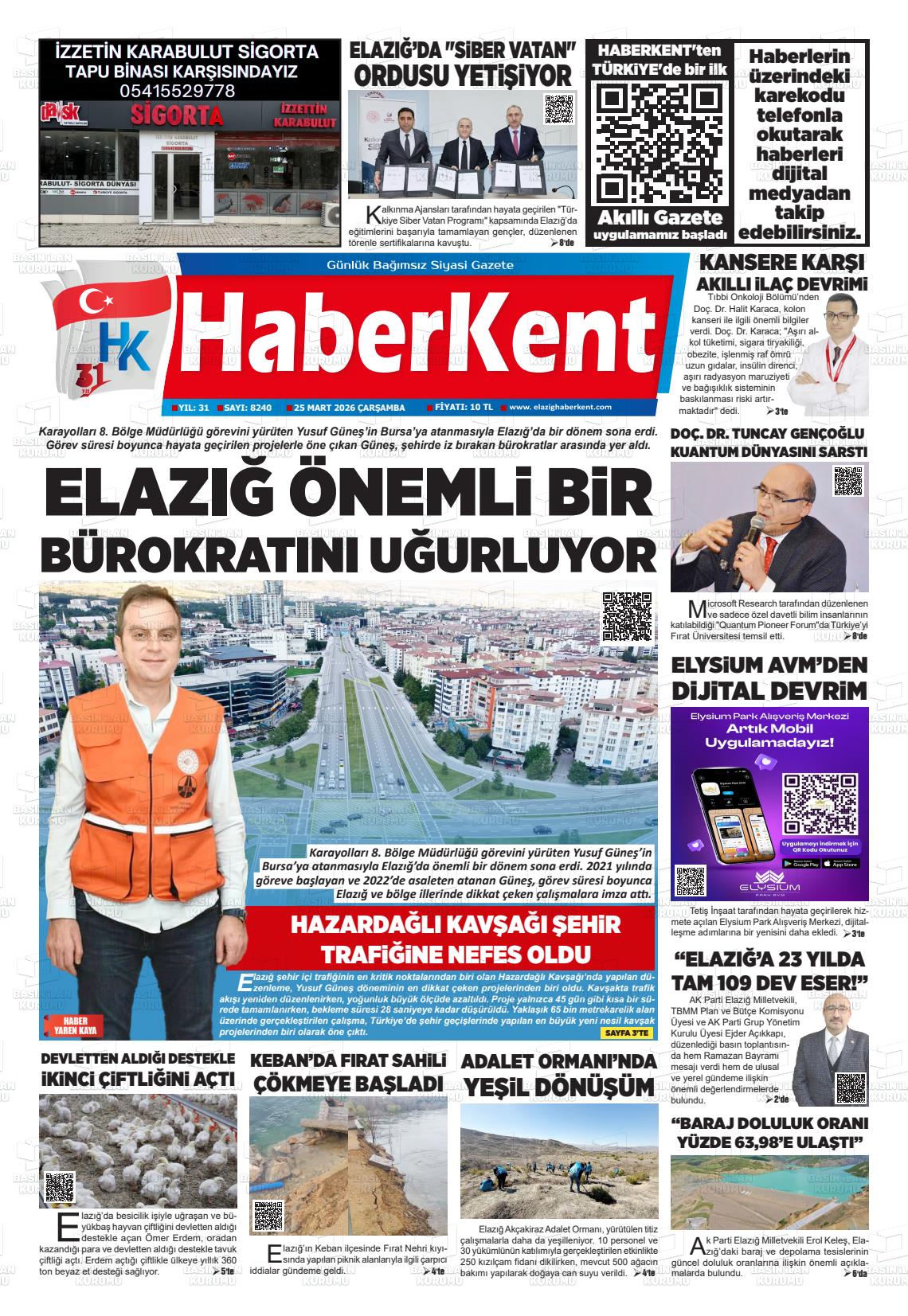 Elazığ Yerel Gazeteleri 25 Mart 2026, Çarşamba Günü Manşeti